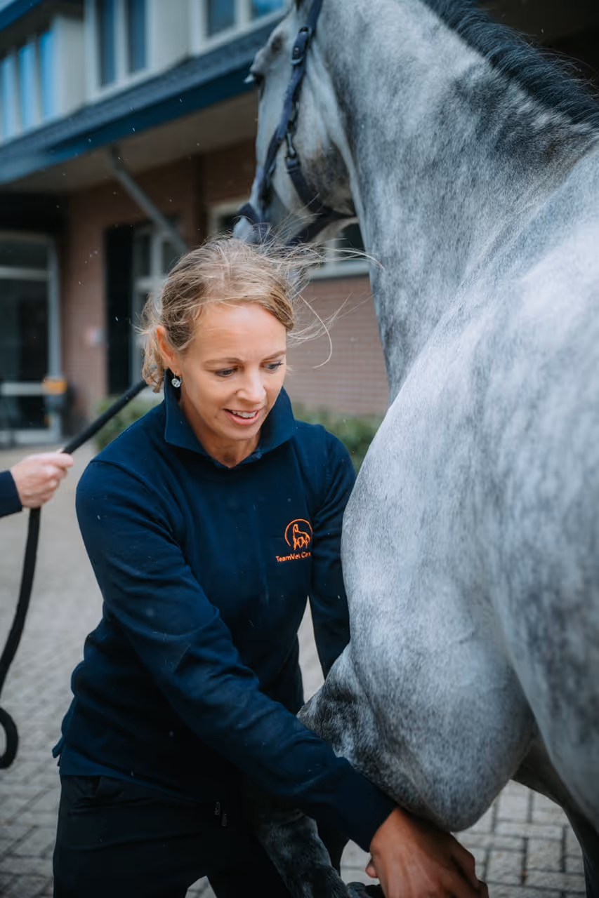 Anna Visser joined the AOC De Groene Welle equine training program in Zwolle as an intern for top dressage rider Hans Peter Minderhoud (later Glock). For 21 years, she cared for his horses, including stars such as Tango, Johnson, Flirt, Dreamboy, and Nadine. Anna has groomed several major championships, including the Olympic Games in Hong Kong, Rio, Tokyo, and Paris. She will be working as an assistant at the TeamVet Centre NL. With her extensive experience as a top groom, the horses are in good hands.